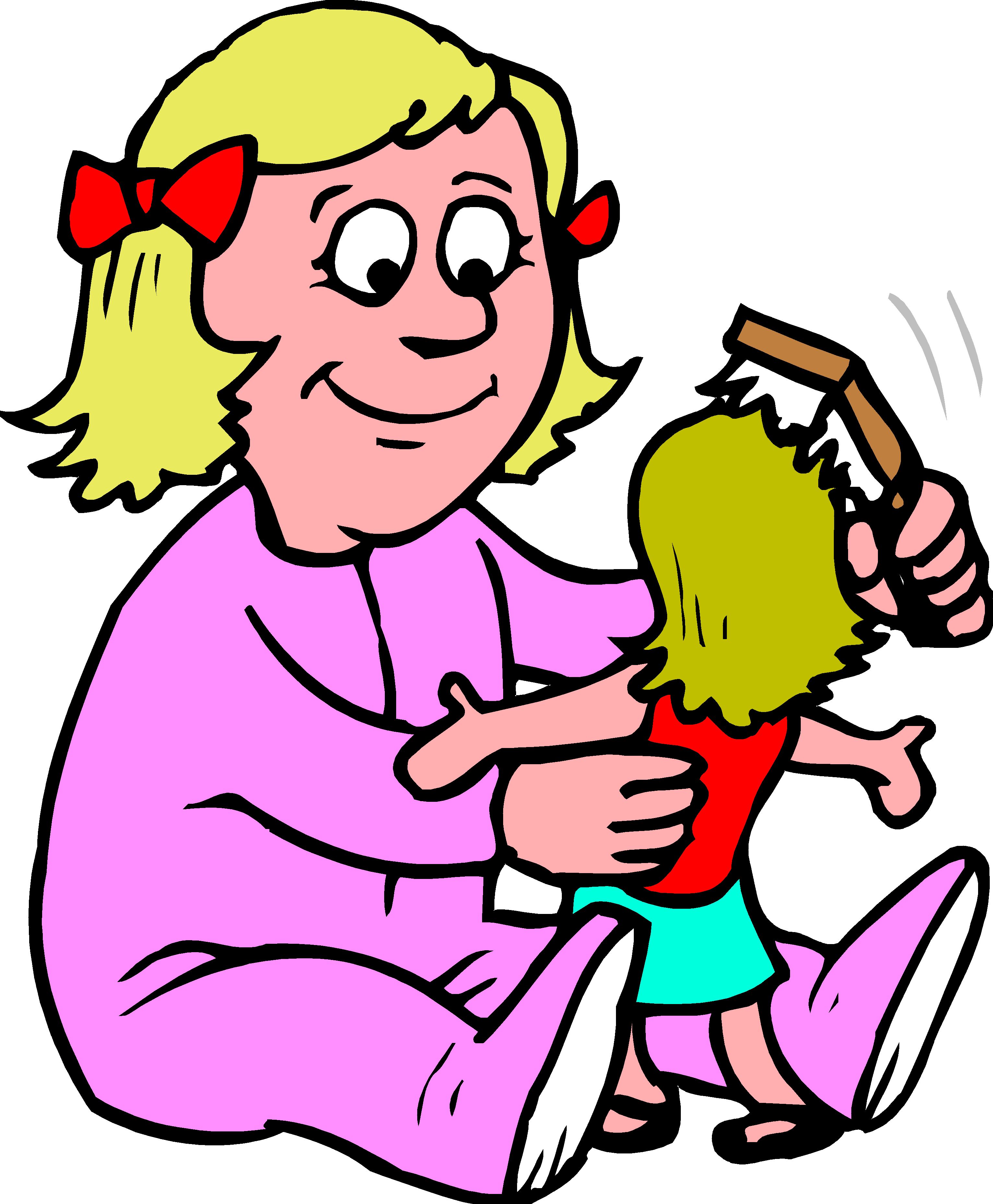 Girl with Doll 05 Clip Art, Kids' Stuff