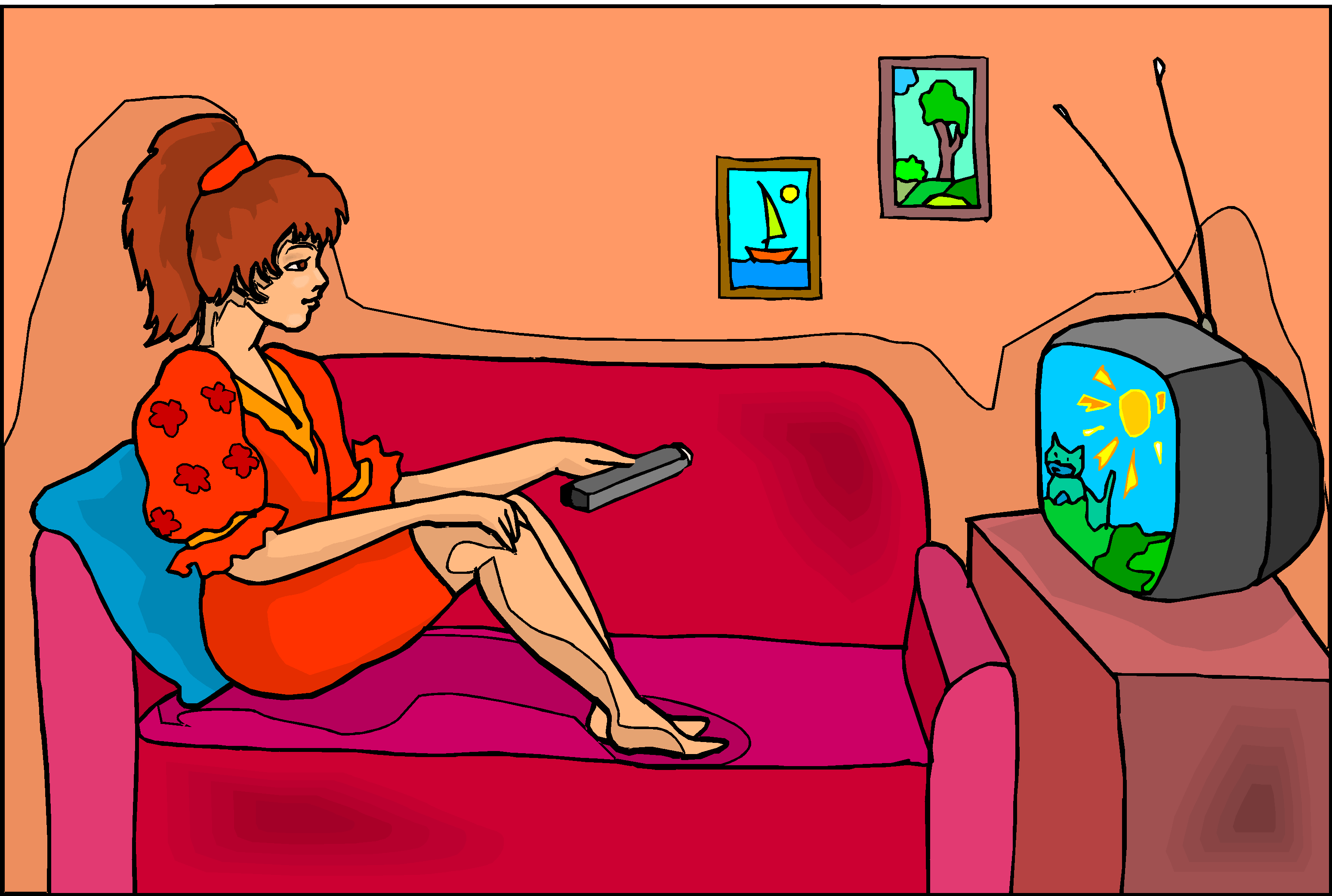 Watching Television Clip Art, People
