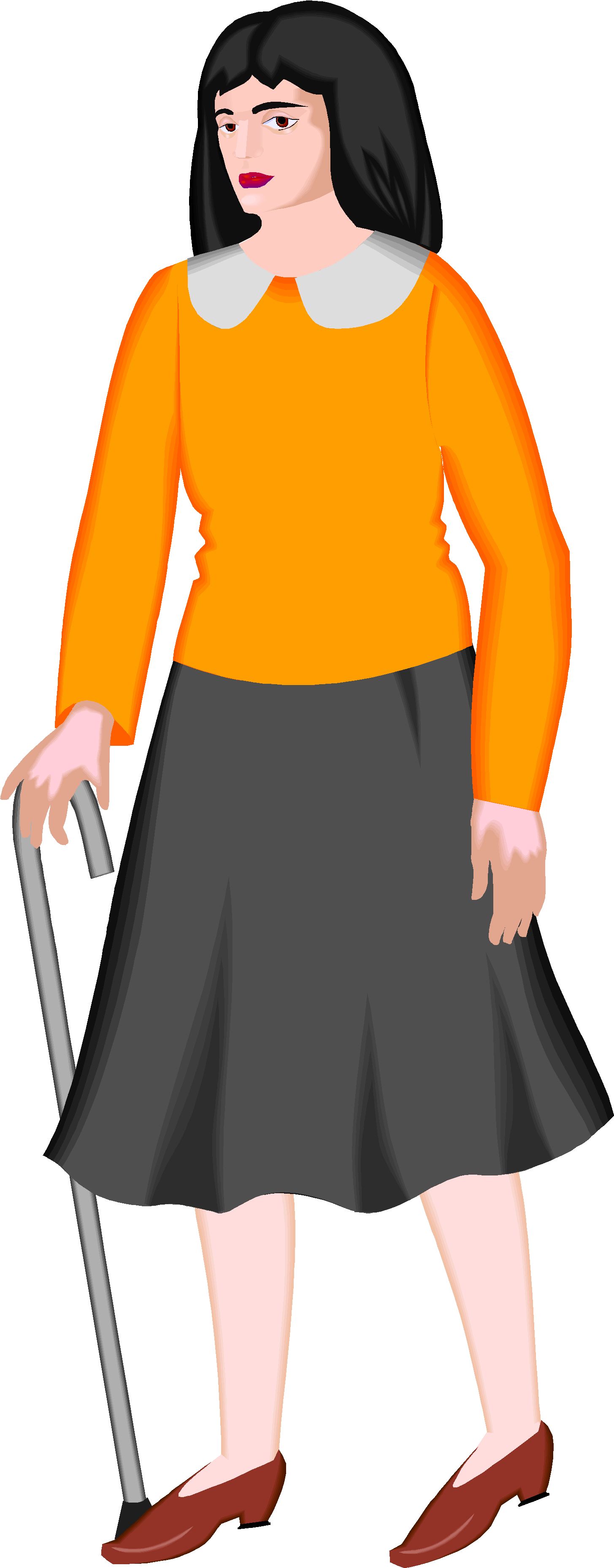 Woman with Cane Clip Art, People