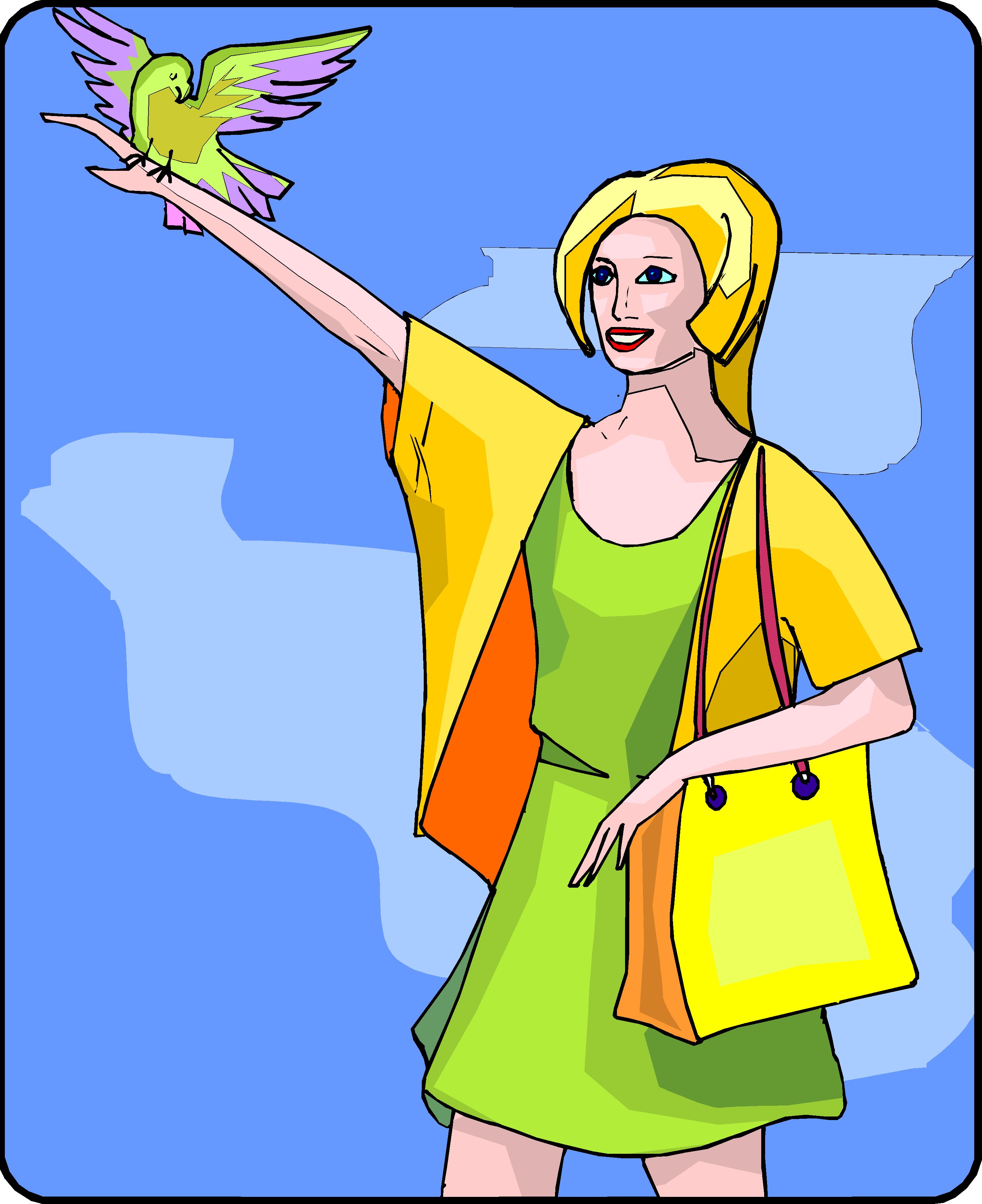 Woman & Bird 2 Clip Art, People