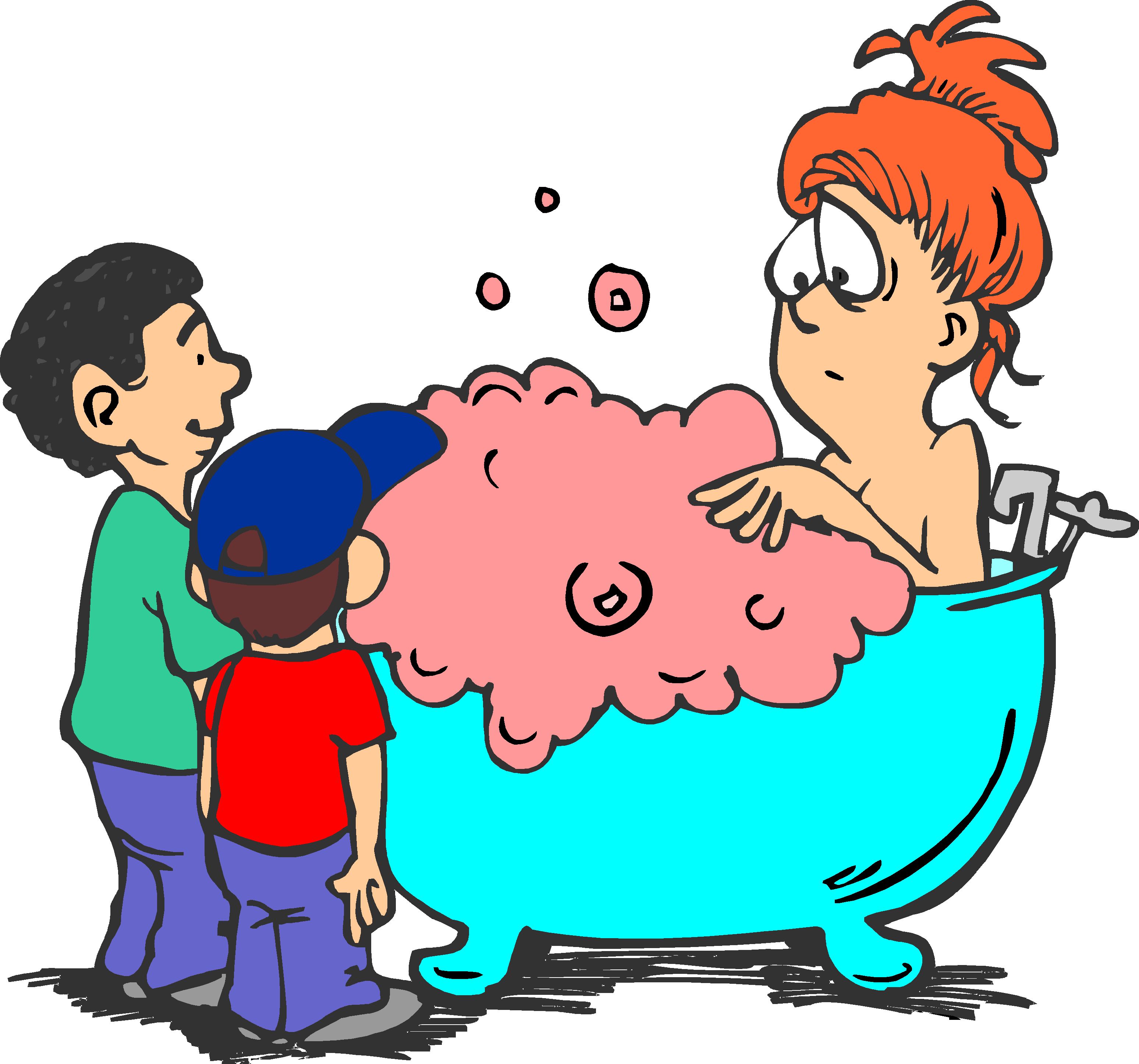 Kids Bothering Mom's Bath Clip Art, People