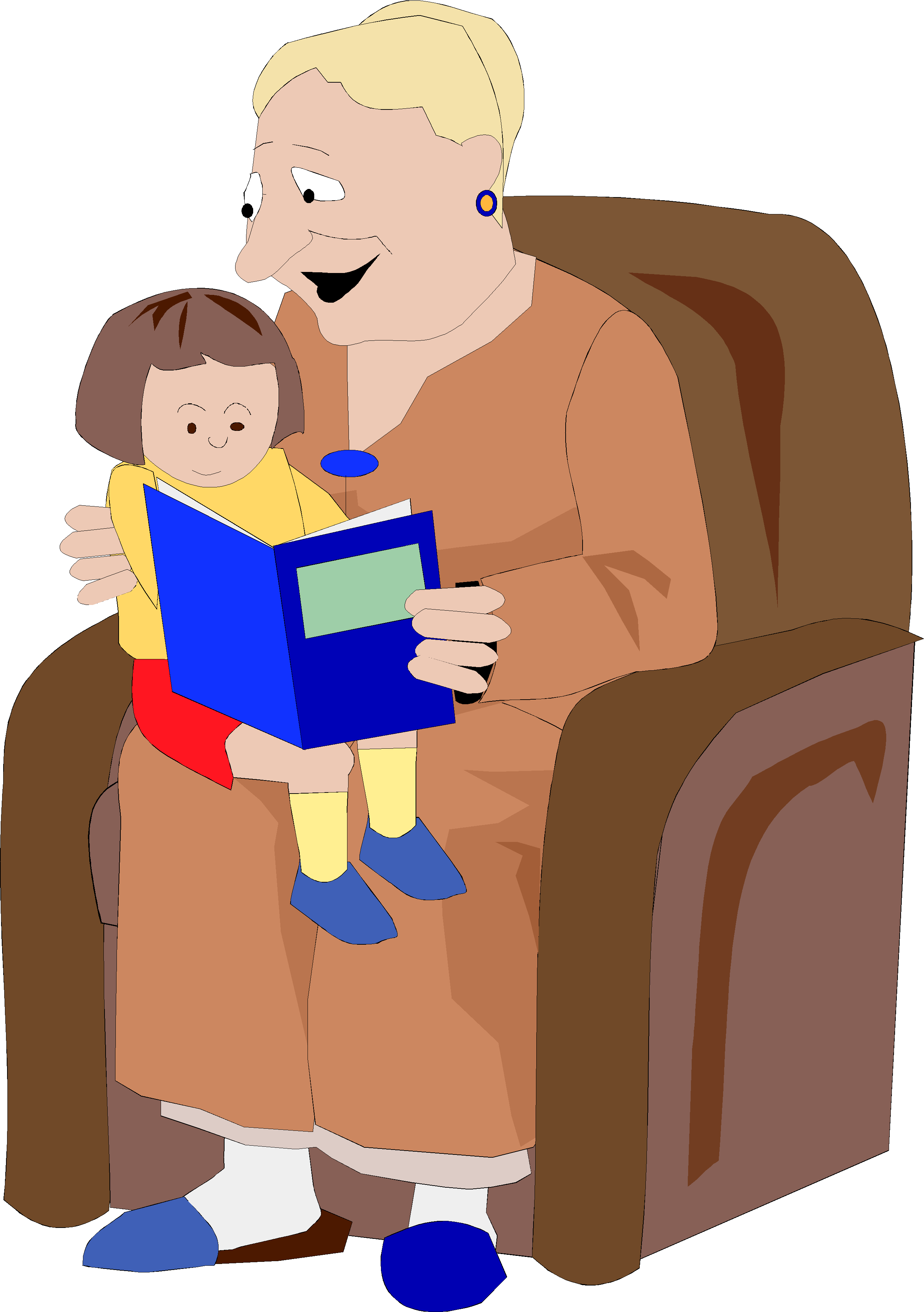 Grandmother Reading to Girl Clip Art, People