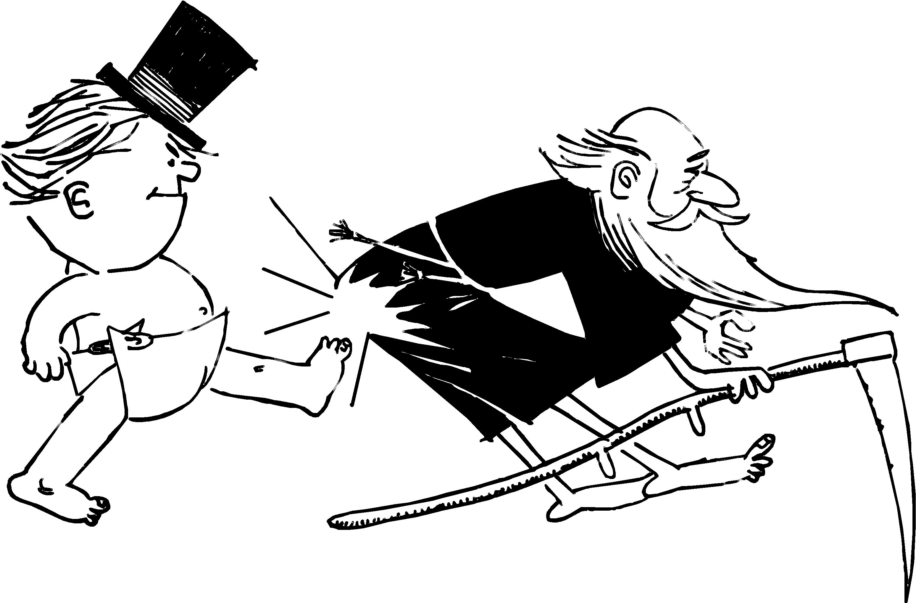 · Baby Kicking Father Time