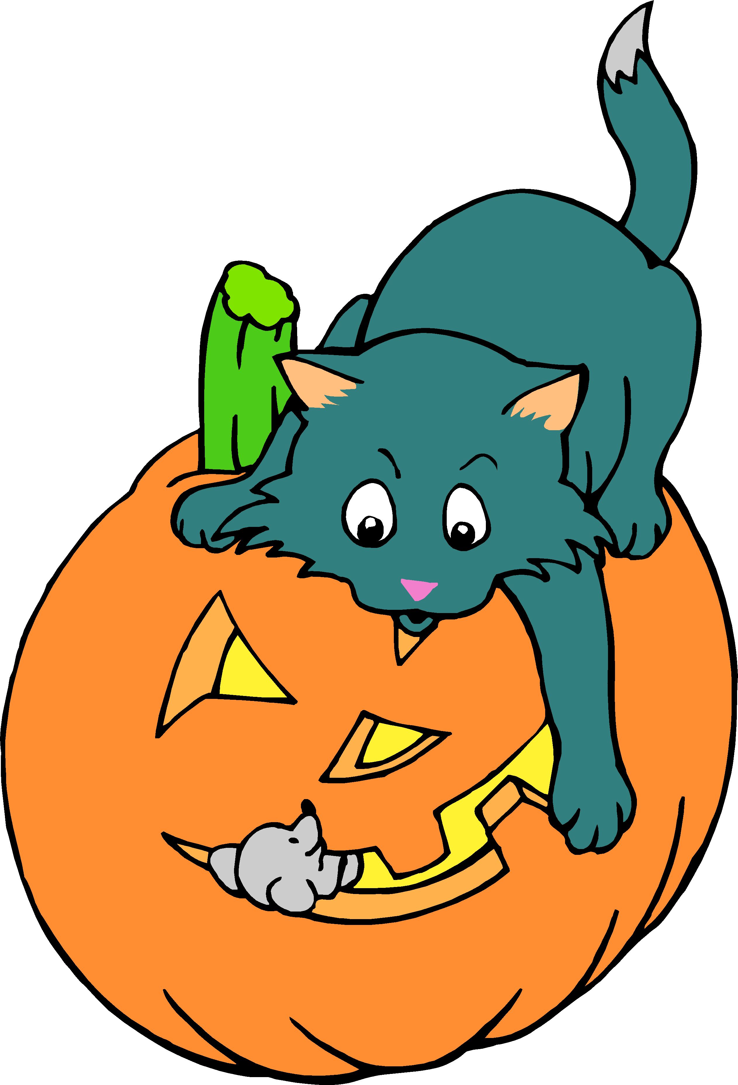 Cat & Mouse on Pumpkin Clip Art, Holidays