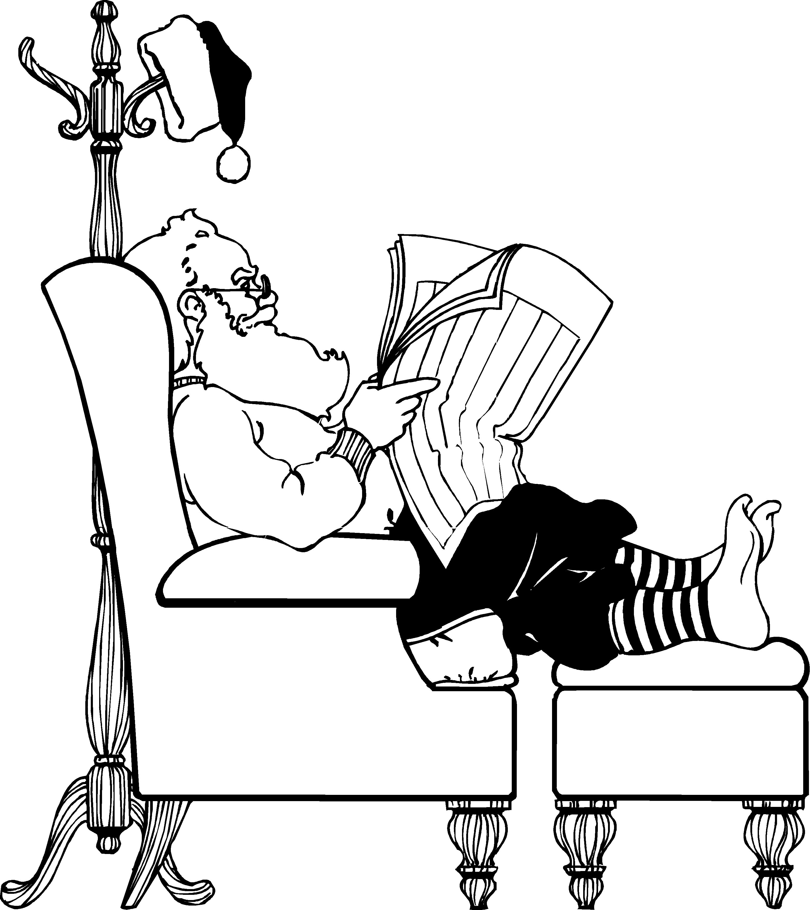 Santa Reading 1 Clip Art, Holidays