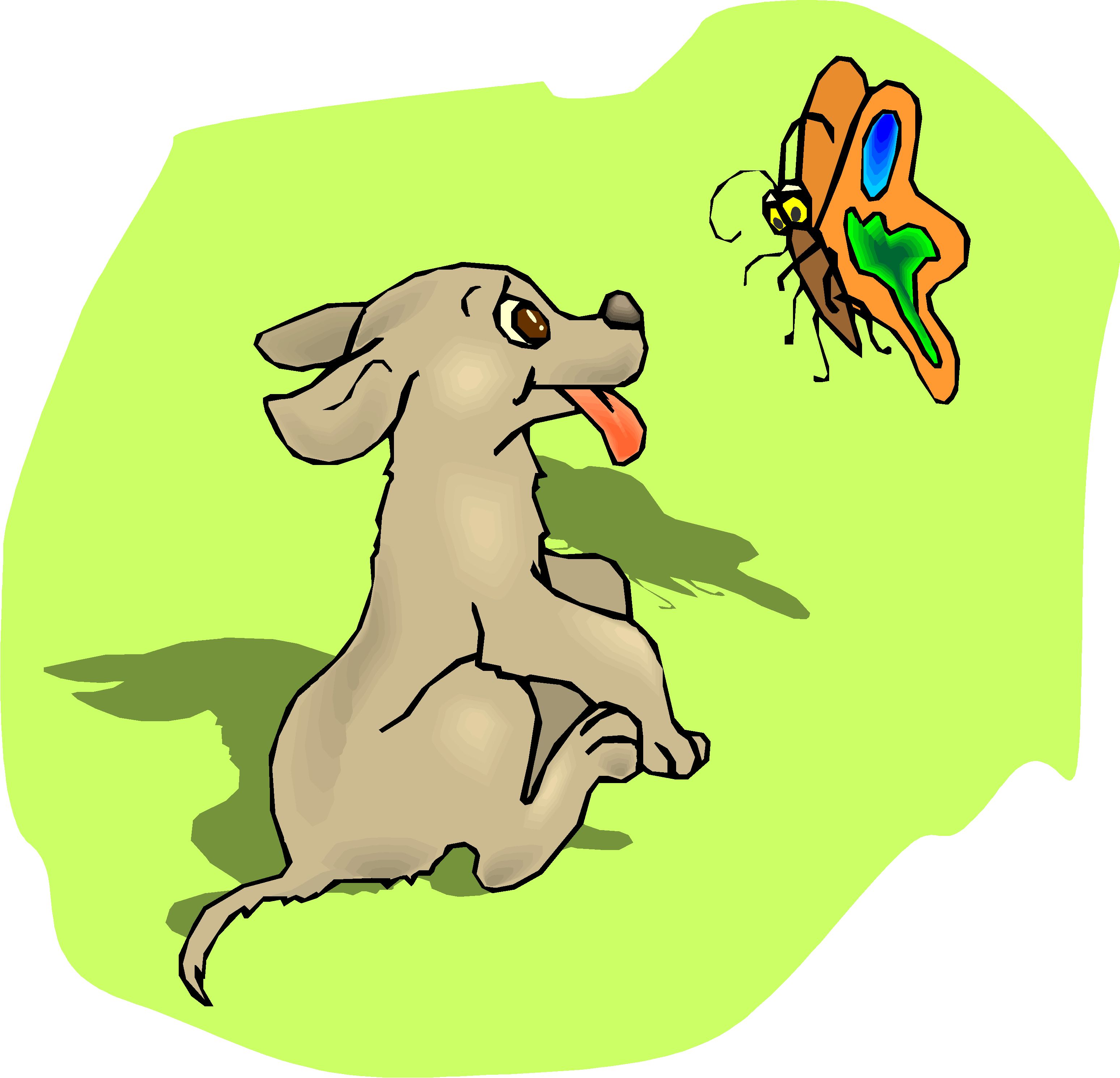 Puppy & Butterfly 2 Clip Art, Animals