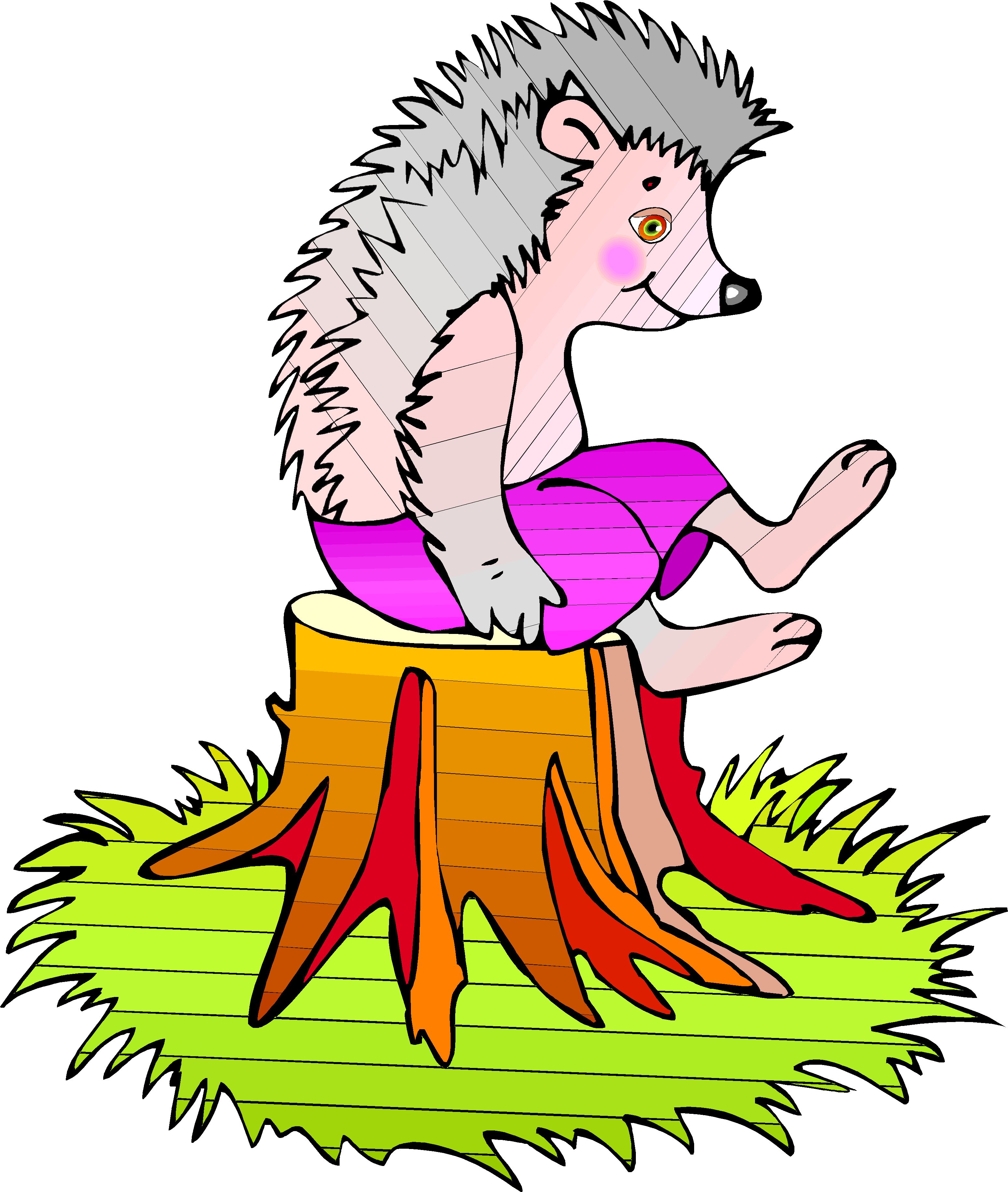 Hedgehog on Stump Clip Art, Animals