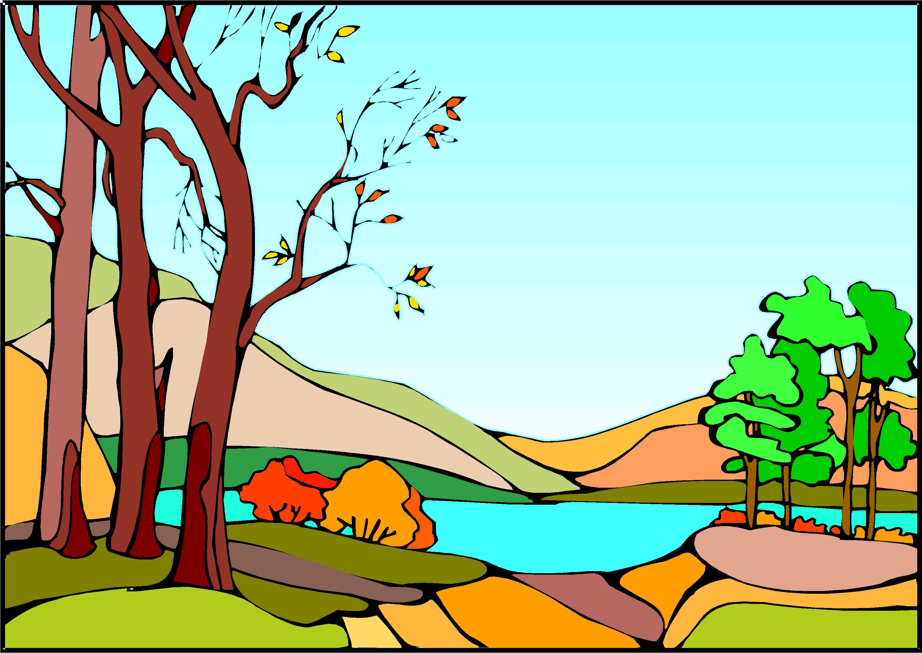 Trees by Stream 2 Clip Art, Landscapes