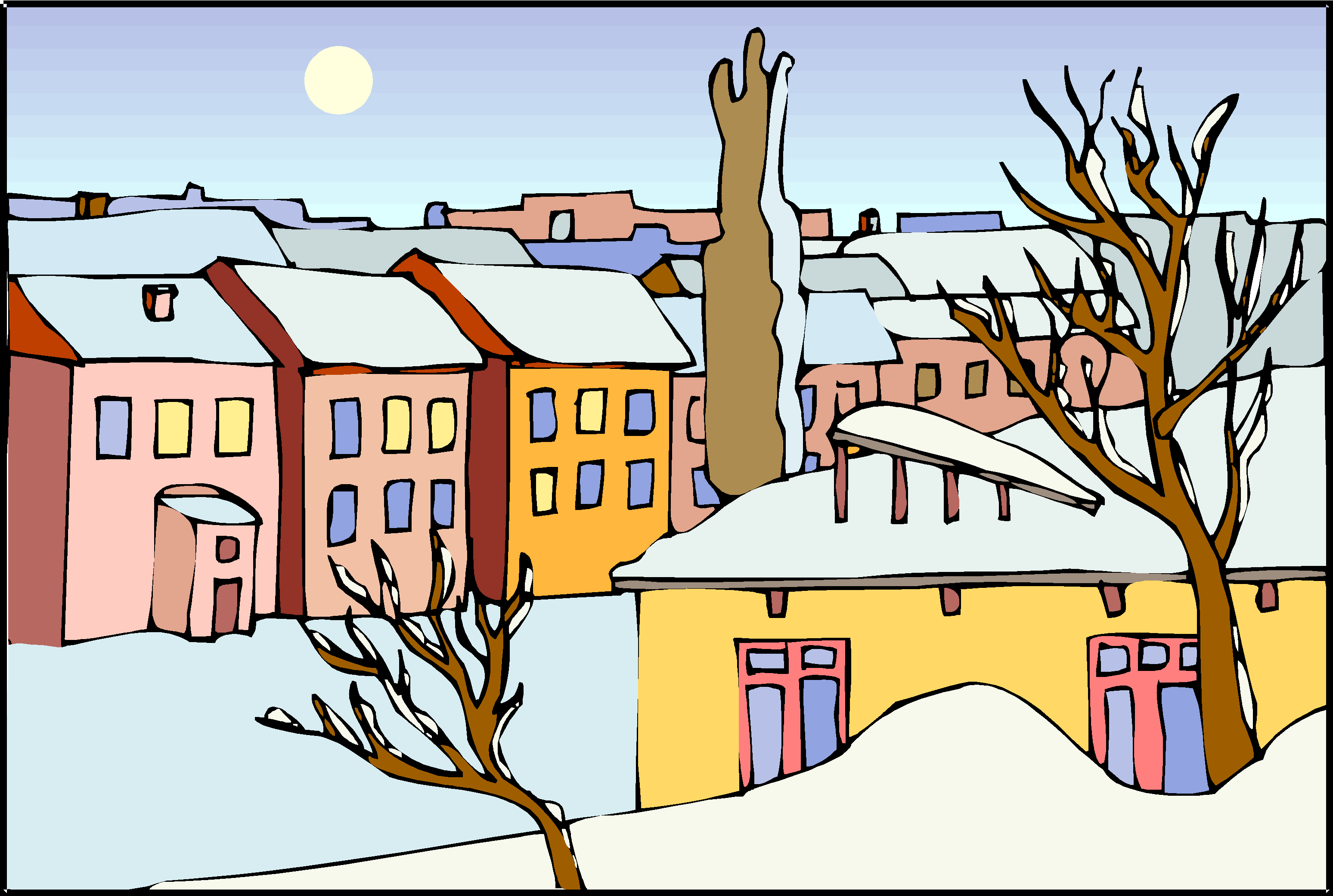 Town in Winter Clip Art, Landscapes