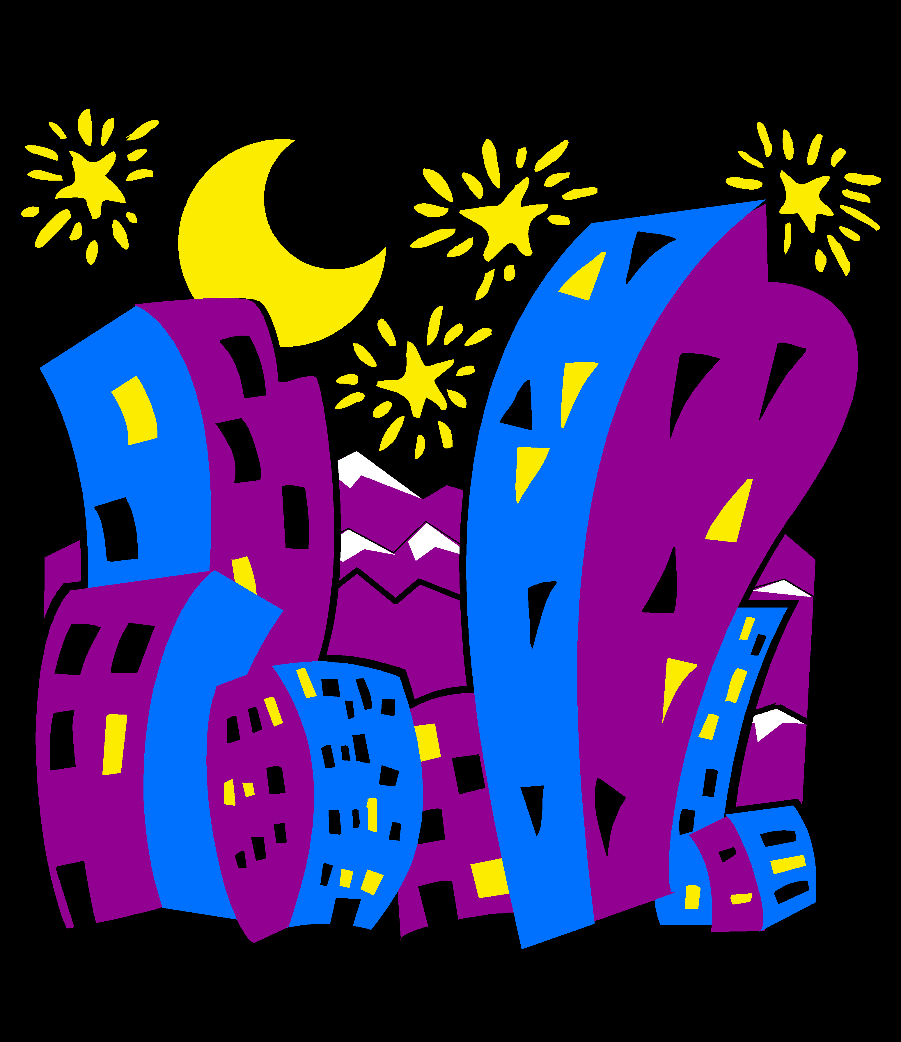 City Cartoon - Night Clip Art, Landscapes