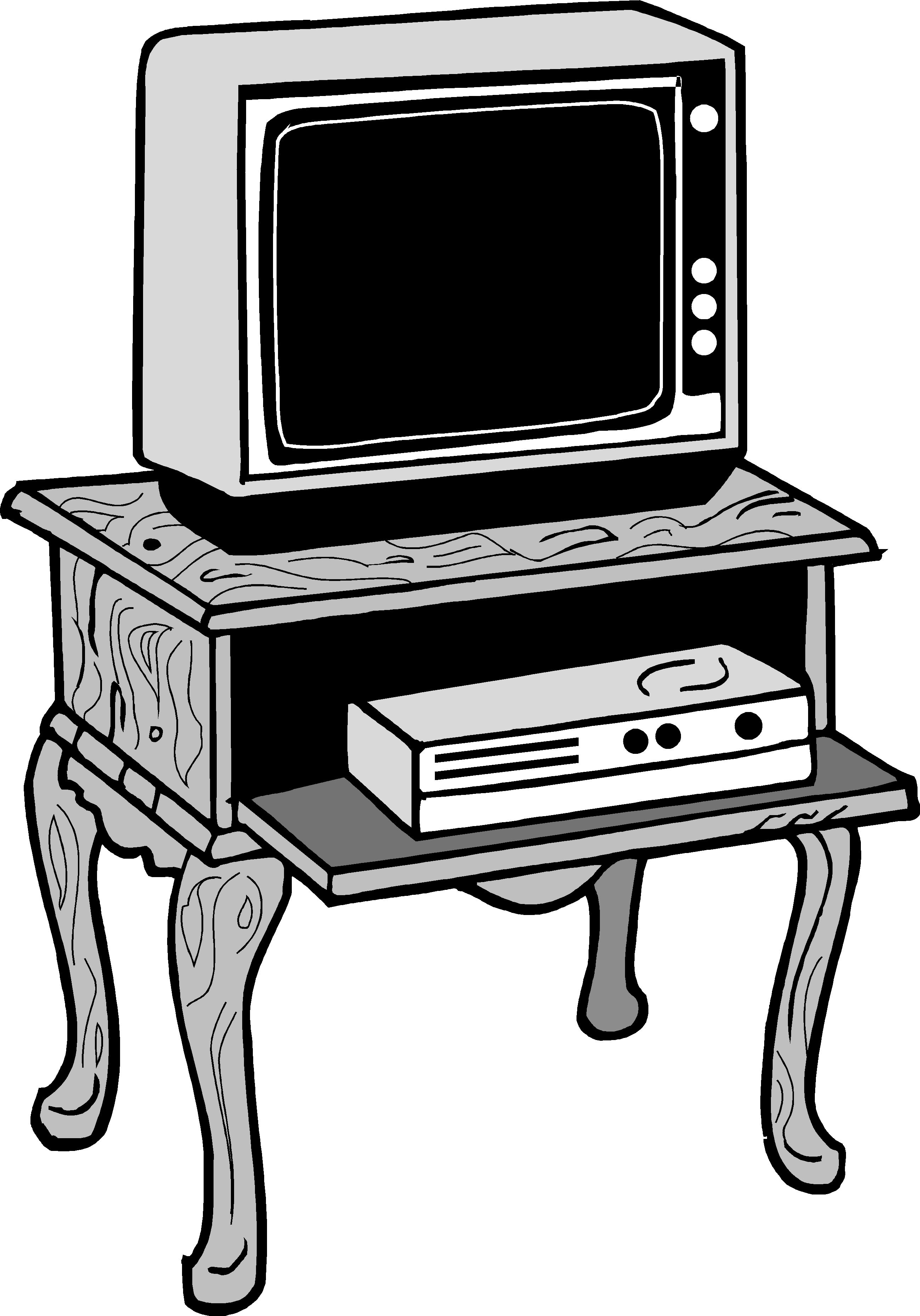 TV & VCR on Wooden Stand Clip Art, Furniture