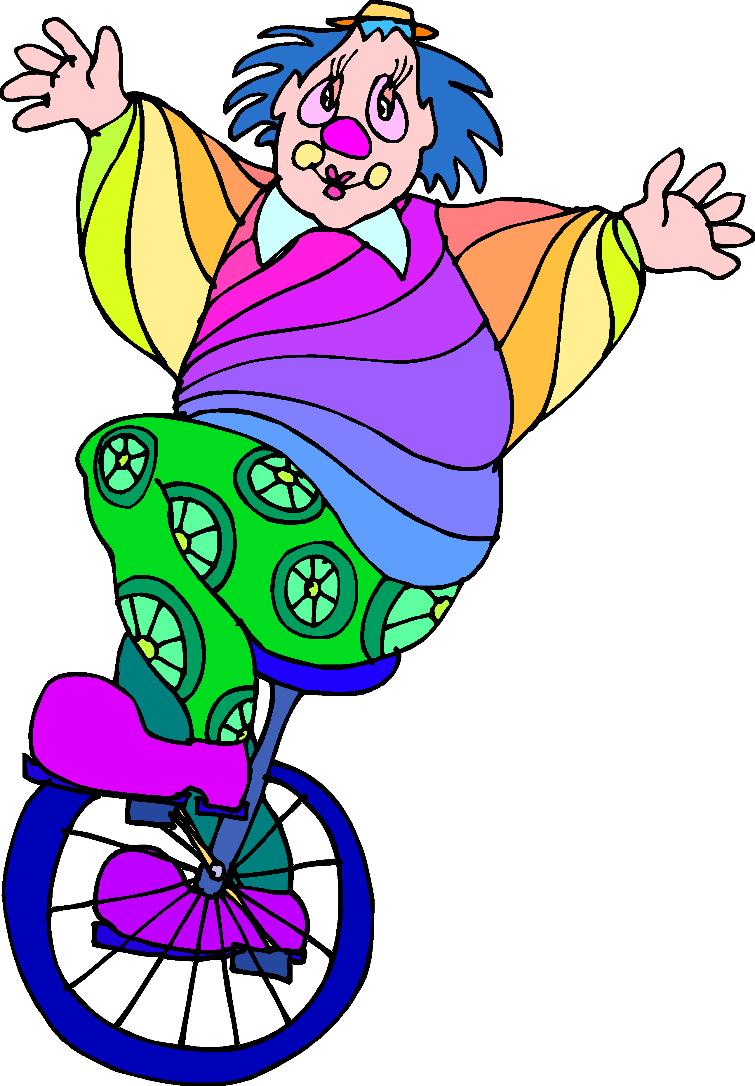 Clown on Unicycle Clip Art, Entertainment