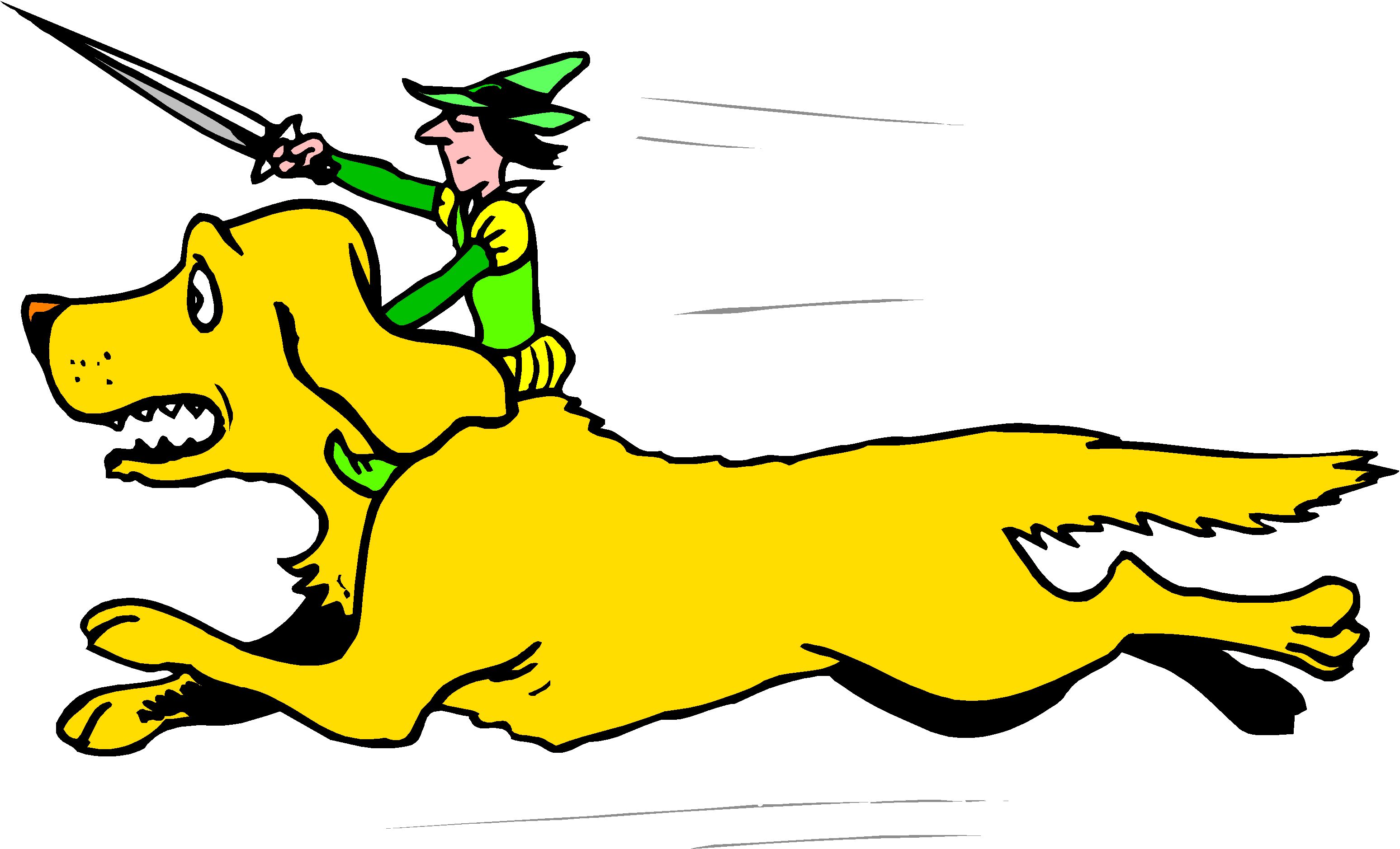 Little Person Riding Dog Clip Art, Fantasy & Medieval